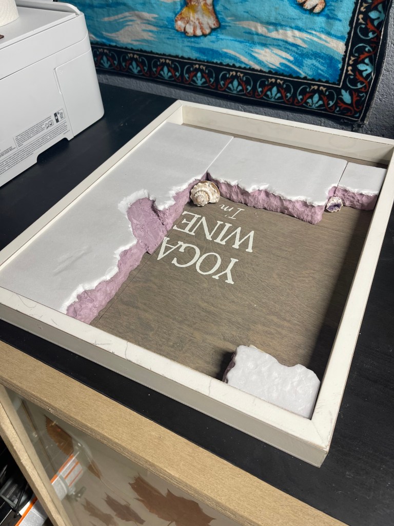 I was lucky enough to find one of those Homesense-style wine mom motivational wall hangings with an inset of just over an inch to act as my board. It’s 16 by 18, but I’m going to use those extra 2 inches to store tokens, scenario relevant minis and probably shells when playing.